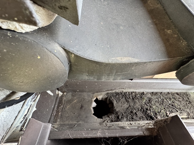画像を見てもらえれば分かりますが、二階の屋根から一階の縦の樋が詰まっておりました!